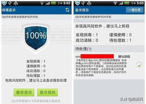 其次,用手机杀毒软件扫描处理一下,清理一下残存!