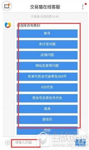 3、之后我们选择需要咨询的类别,在下面输入咨询问题发送即可。