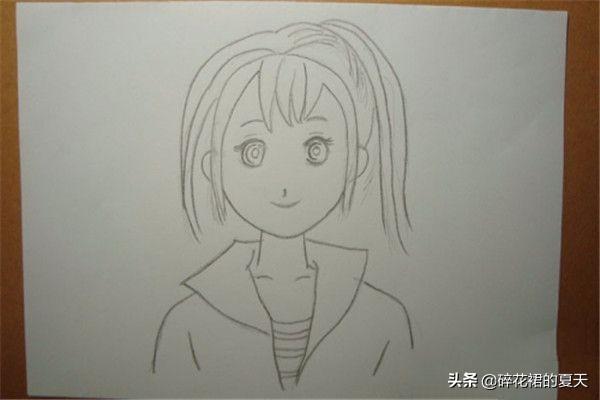 9 用铅笔加深萌少女主要的线条,注意用线要尽量保持流畅。 最后,整个人物的图像画好了,除去一些不用的线条,用铅笔加深萌少女主要的线条,注意用线时要尽量保持流畅。这样一个可爱的铅笔画萌少女就画好了,如下图所示。喜欢绘画的朋友,根据这个铅笔画萌少女入门教程的步骤,也来画画吧。