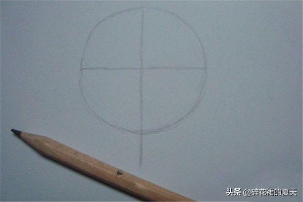 1 画出一个正圆,并画上十字线。 用铅笔在白纸上画出一个正圆,并画上十字线,如下图所示。
