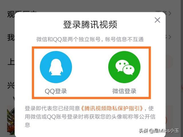 Tips:目前腾讯视频仅支持QQ和微信两种登录方式。